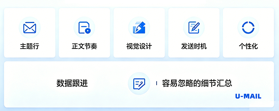 U-Mail的邮件个性化功能可以把收件人姓名、公司名、行业标签这些字段动态填入对应位置,批量发送的同时保留每封邮件的个人感。数据标签维护得越完整,能做的个性化深度就越大。